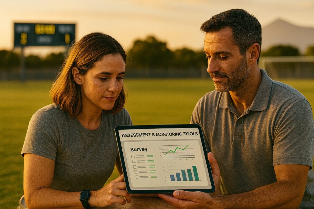 Surveys, evaluation templates and progress-tracking tools to measure coaches’ competency gains and improvements in athlete well-being.